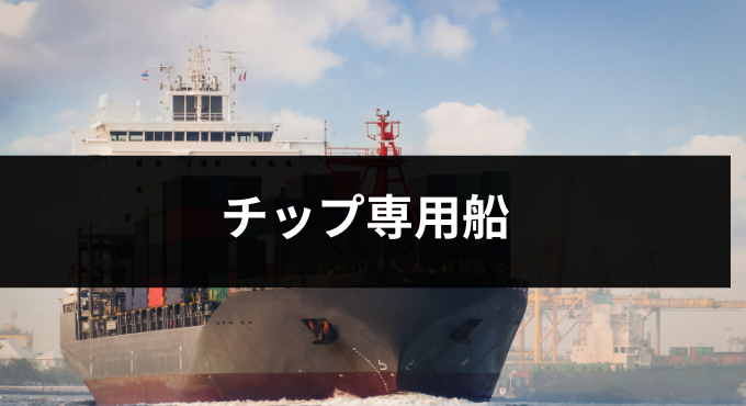 チップ専用船は、ばら積み船の一種で、主に木材チップを運搬するために設計された船舶である。これらの船は特に木材加工業において重要で、製紙業など木材チップを原料とする産業への輸送に利用される。木材チップの輸送においては、軽量であるが体積が大きいため、積載効率が重要視される。船倉の体積を大きくするために船の深さが大きい(縦に長い)構造をしており、満載喫水線から上部甲板までの鉛直距離である乾舷の高い船体となっている。チップ専用船は、このような特性を考慮して、広い貨物室と高い積載容量を持つことが多い。また、チップの積み下ろしを迅速かつ効率的に行うための設備、例えばコンベヤシステムや荷役用のクレーンなどが装備されていることも一般的である。さらに、木材チップは湿気による品質劣化が問題となることから、船内の湿度管理に配慮した設計がなされている場合もある。