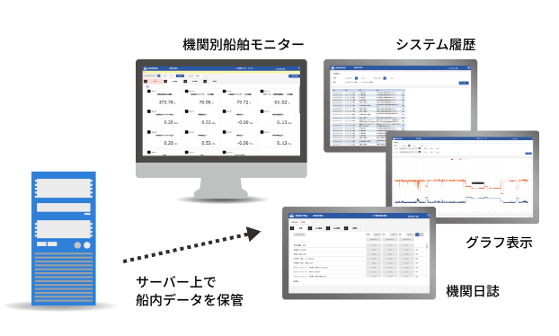 船の健康状態をデータで見える化し、トラブルを未然にキャッチすることで安心な操業を遠隔監視で実現するシステム。
