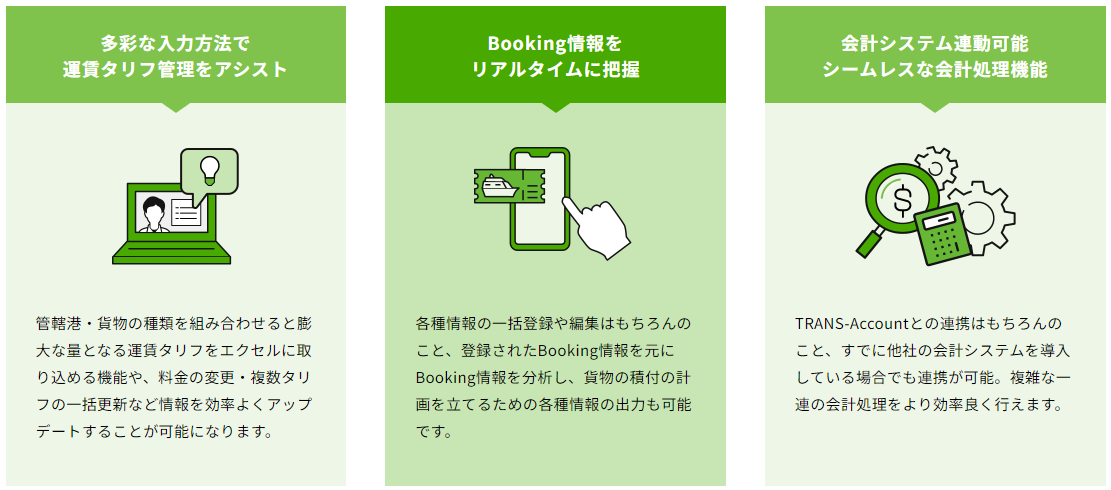 ホーム運航業務システム業務システム(その他) 「カテゴリ:業務システム(その他)」 Trans-Liner Trans-Liner 2024年3月31日2024年4月5日 サービス概要 サービス名 Trans-Liner サービス読み方 トランスライナー サービスURL https://www.trans-s.net/product/liner/ サービス提供団体 株式会社エイ・アイ・エス カテゴリ #業務システム(その他) サービス概要 定期船オペレーターと集荷代理店との情報を効率的に運用しながらBooking-B/L管理を支援するシステム 導入実績 Transシリーズとして、国内企業多数に導入 料金プラン n/a 備考 n/a