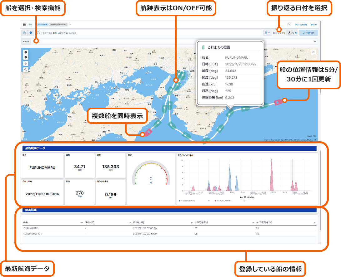 - 専⽤のイチダケユニットを設置したその⽇から、スマートフォンやパソコンで船の現在位置や航路を把握することができる