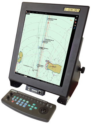 電子海図システムとして、表示ソフトウェアにNaviproECSアドバンスドを採用。PC内蔵17インチ液晶ディスプレイ縦置・横置で、キーユニットもオプションで装備