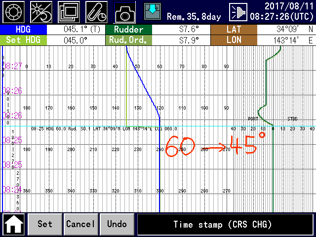 従来の記録紙やペンを使わずに、方位などの航海情報をカラー液晶画面に表示し、CFカードに記録できるデジタルコースレコーダー